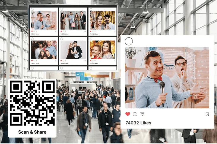 Photo booths and UGC uploads are powerful audience engagement ideas that turn the guests into brand ambassadors. The photo booths are designed to increase audience engagement by encouraging immediate sharing and facilitating the seamless collection of audience attending the event.