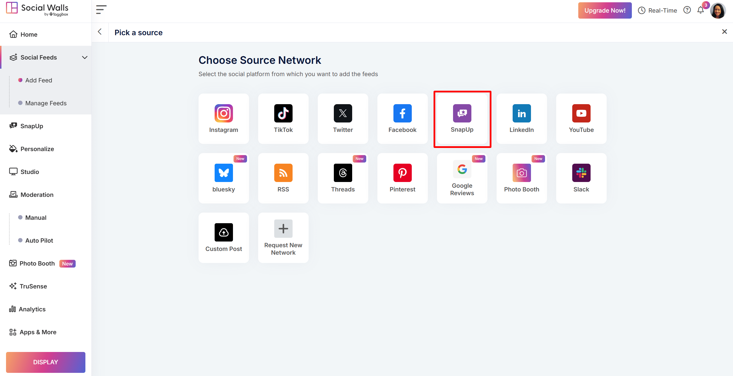 Step 2 – Now, create your feed using source network like “SnapUp“.