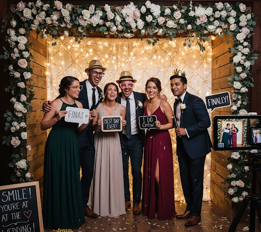 Back in the day, a photo booth for weddings meant a closed box-style booth spitting out printed photo strips (which everyone lost by the next morning). Now, things have gone digital. You’ll find photo booth options for weddings ranging from sleek selfie stations to full-on digital walls where pics appear via QR codes for instant sharing screens.