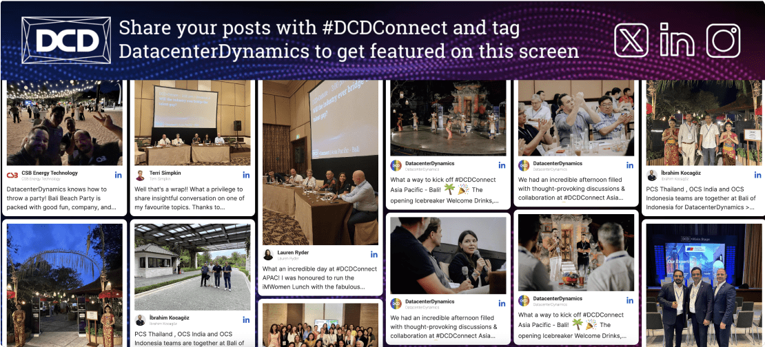 Showcasing social media posts on a large screen at the conference encouraged the attendees to share content on their handles promoting DCD. This boosts engagement and increases the number of generated content.