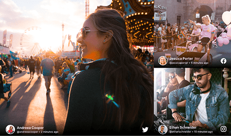 Create an engaging Social Media Wall with valuable UGC that boosts engagement, creates experiences, and attracts sponsors at virtual events, hybrid events, or any type of event.