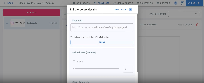 Step 9: Insert the display wall URL and Click “Save” and then “Publish”.