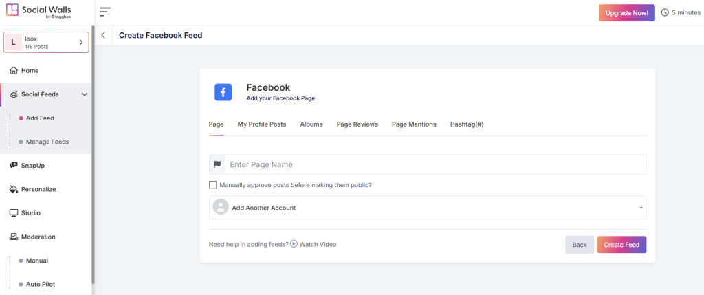 Inside the dashboard, you can build and customize your Facebook feed to match your branding. If you’re planning multiple feeds or campaigns, managing everything in one place helps you stay organized.