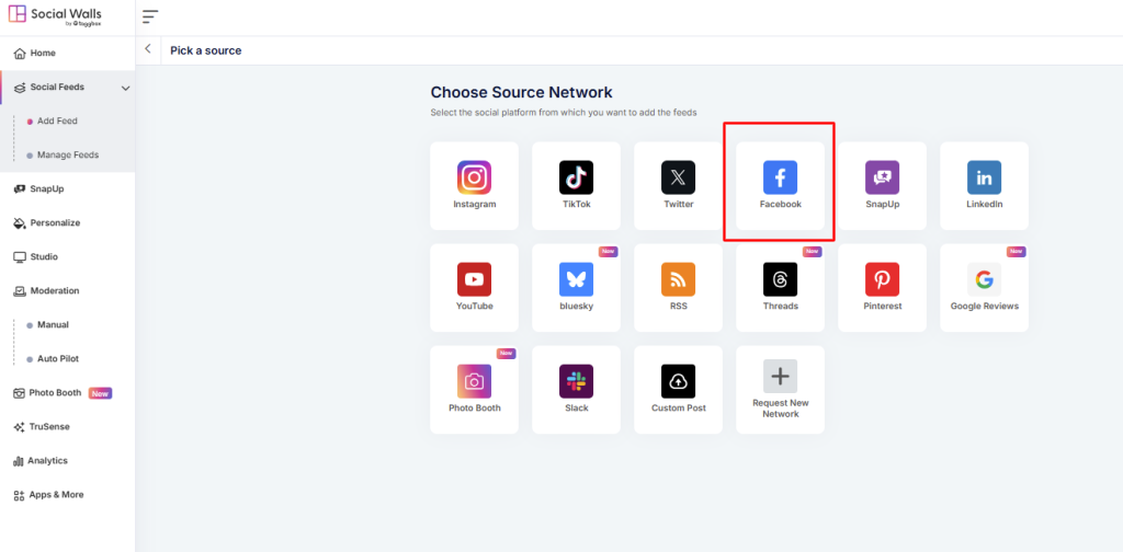 Step 4: Select Facebook as Your Source of Content