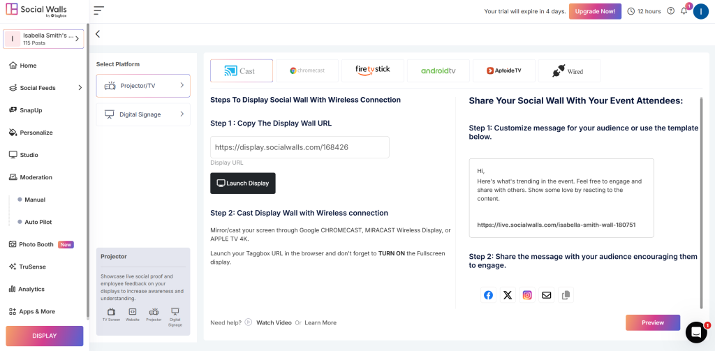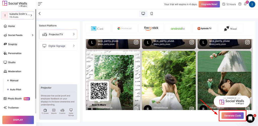 Step 2: You’ll be redirected to Social Walls Dashboard.