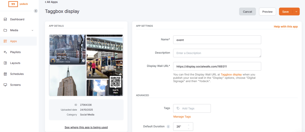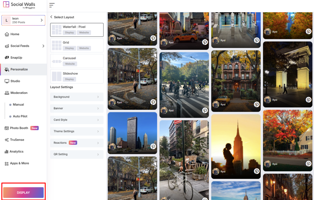 Step 6: Once selected, preview your Social Wall to ensure it looks perfect. Then, under Integrate with Digital Display → Digital Signage, there you will get social wall display url.