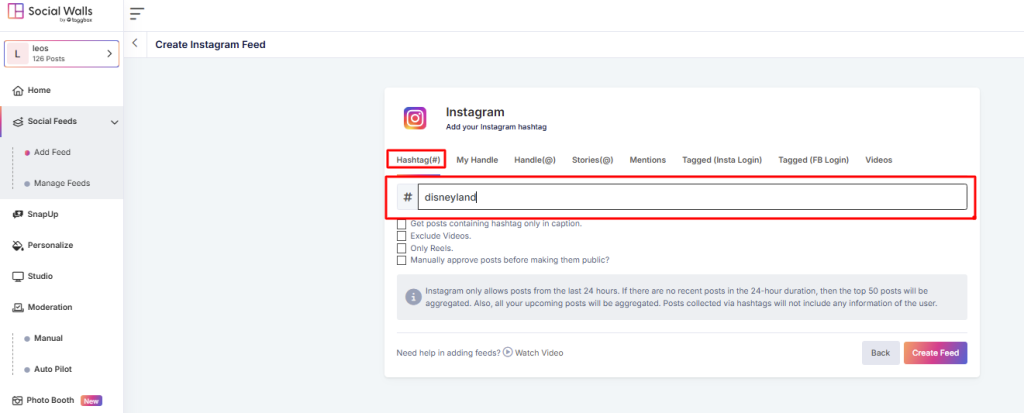 Step 5. After that, choose the source of your feed — this is where your content will be pulled from to display on your wall.
