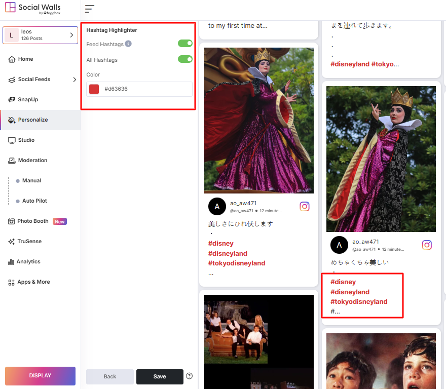 Step 8: Once everything looks good, click to save your settings and see your hashtags beautifully highlighted on your wall.